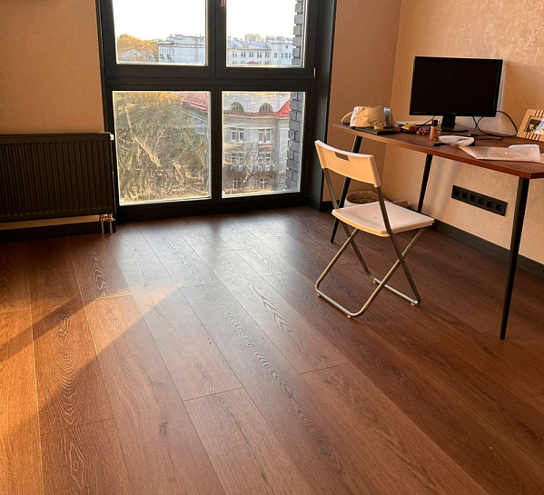 - Звукоизоляция: интегрированная подложка обеспечивает комфорт